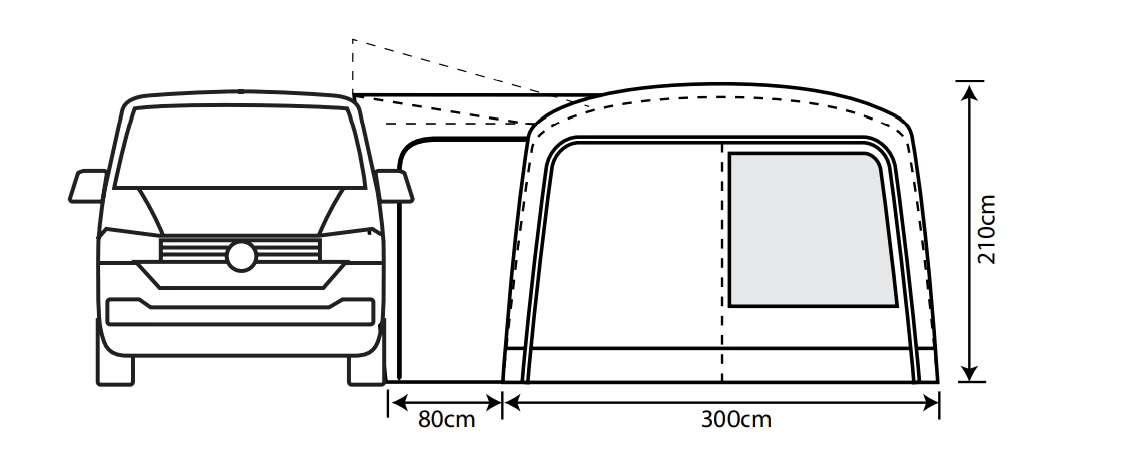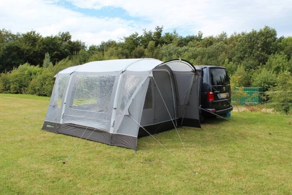 The Outdoor Revolution Cayman Combo Air, a unique and stylish awning suitable for both UK and continental vans, due to the dual entrance design. This makes it ideal for vans where the habitation door is on the left or the right hand side of the camper van. Furthermore, the design is sideways facing, which helps to maximise the living space to the side of the camper van. It is lightweight in design with a 70 denier fabric, 3000mm polyester fabric. New for 2022 if using with the additional Porch Door a cabin Inner tent will fit inside.