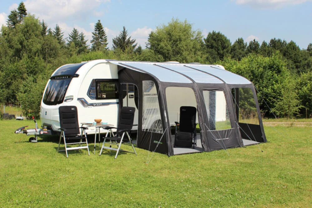 New to the caravan awning collection for 2022, the Outdoor Revolution Eden 390 is a zero-fuss, with an inflatable design, perfect for short-term camping trips, due to it’s low weight, and ease of pitching.