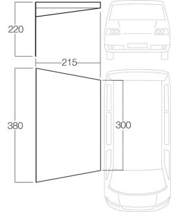 Perfect for taller vehicles such as motorhomes, with a height between 255 – 295cm, offering a lightweight, compact pack-size awning that offers a large living space to the side of the van.
